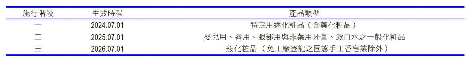 TFDA在推行產品資訊檔案(PIF)建置制度上,也考量避免對產業造成過大衝擊,公告規定依照產品類型來分階段施行管理辦法,時程如下表: